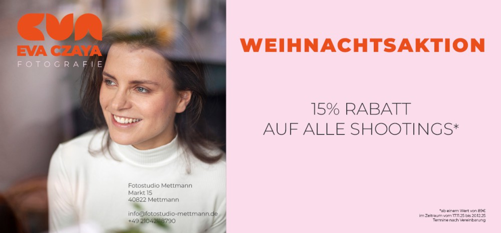 Bis zum 20.12 gibt es bei mir im Fotostudio 15% auf alle Shootings (ab einem Wert von 89€).